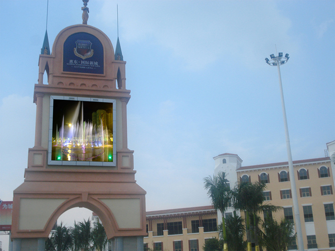 特色:惠州地产公司广告发布LED大屏-室外P16全彩LED显示屏69㎡