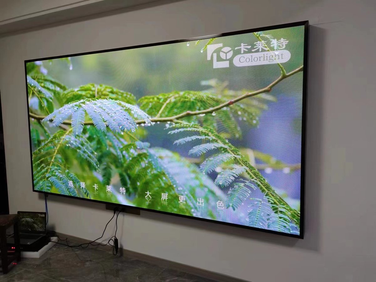 特色:江苏南京会议室室内P2全彩LED显示屏,面积6余平方,采用铜支架灯珠,高刷6363驱动IC,创联电源,磁铁前维护安装,屏体点亮后效果极佳,并得到用户的一致好评。
